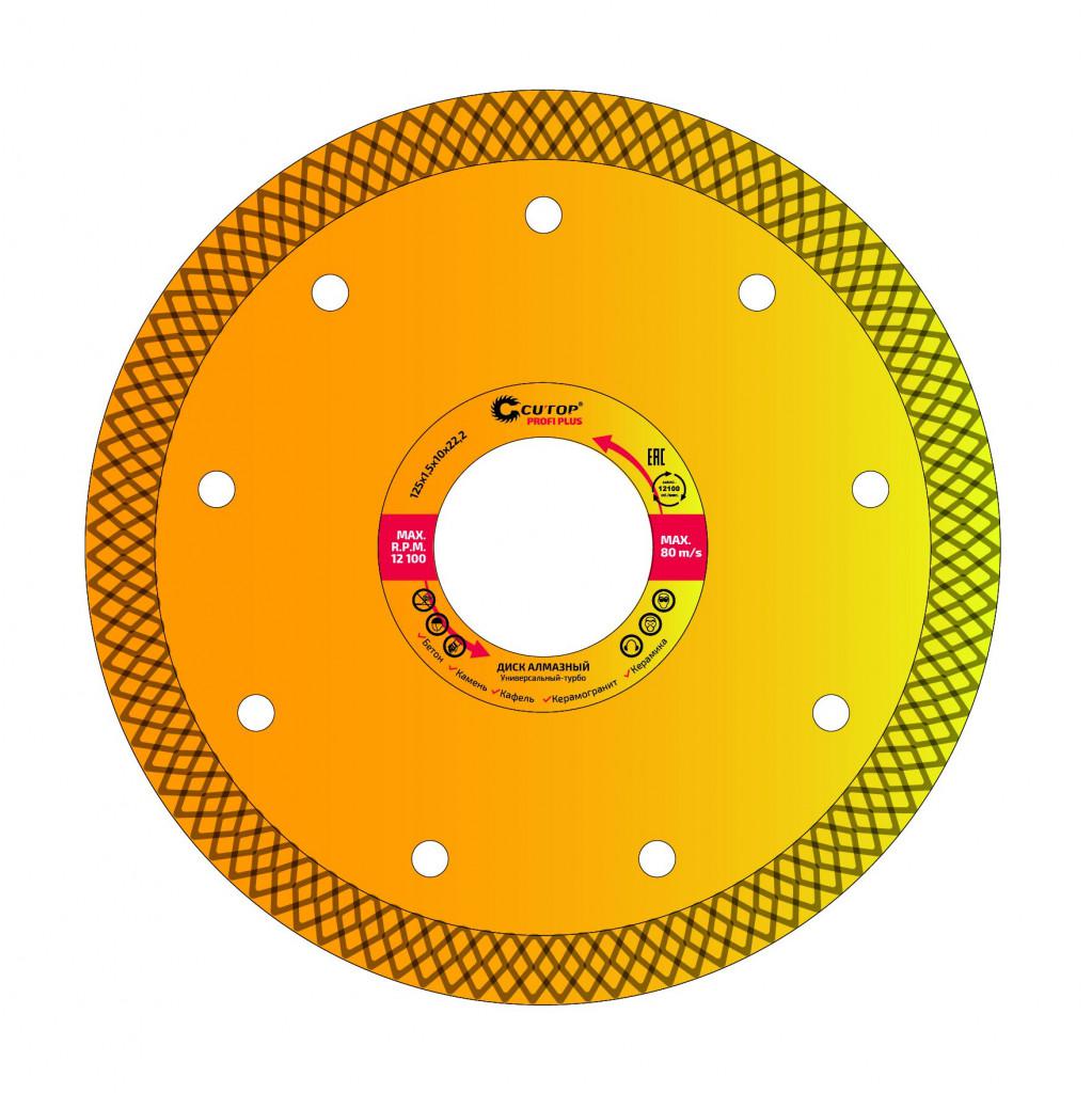 Для резки керамической плитки. Сухая, влажная резка. Применяется на УШМ и стационарных плиткорезах для резки с охлаждением керамогранита, твердой и мягкой керамической плитки, искусственного и натурального камня. Режущая кромка обеспечивает высокую скорость резки и аккуратный точный распил плитки без трещин и сколов. Высокая концентрация алмазов мелкой фракции обеспечивает идеальную чистоту получаемых кромок. Изготовлен методом горячего прессования, что обеспечивает большую твердость и более длительный срок службы диска в сравнении с методом холодного прессования. Высота алмазного режущего слоя в 10 мм позволяет использовать круг для большого объема работ. Специальная форма режущей кромки обеспечивает лучшее охлаждение круга во время работы для большей эффективности использования. Усиление диска в районе посадочного отверстия для повышения жесткости и снижения вибраций. Материал: инструментальная сталь, режущая кромка содержит порошок из технических алмазов. Упаковка: блистер.