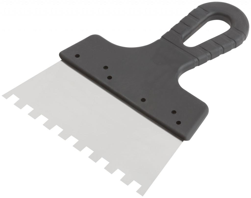 Шпатель 8х8мм 150мм, нержавеющий зубчатый с пластмассовой ручкой, FIT,06618